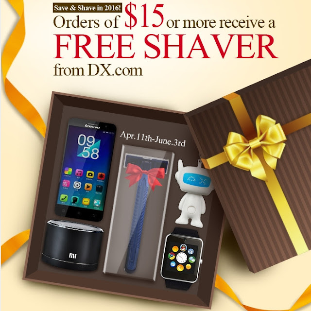 С всяка ваша поръчка на стойност $15 или повече от DX.com ще получите безплатна самобръсначка като подарък. Тя ще бъде добавен към кошницата ви автоматично. По един подарък на поръчка.